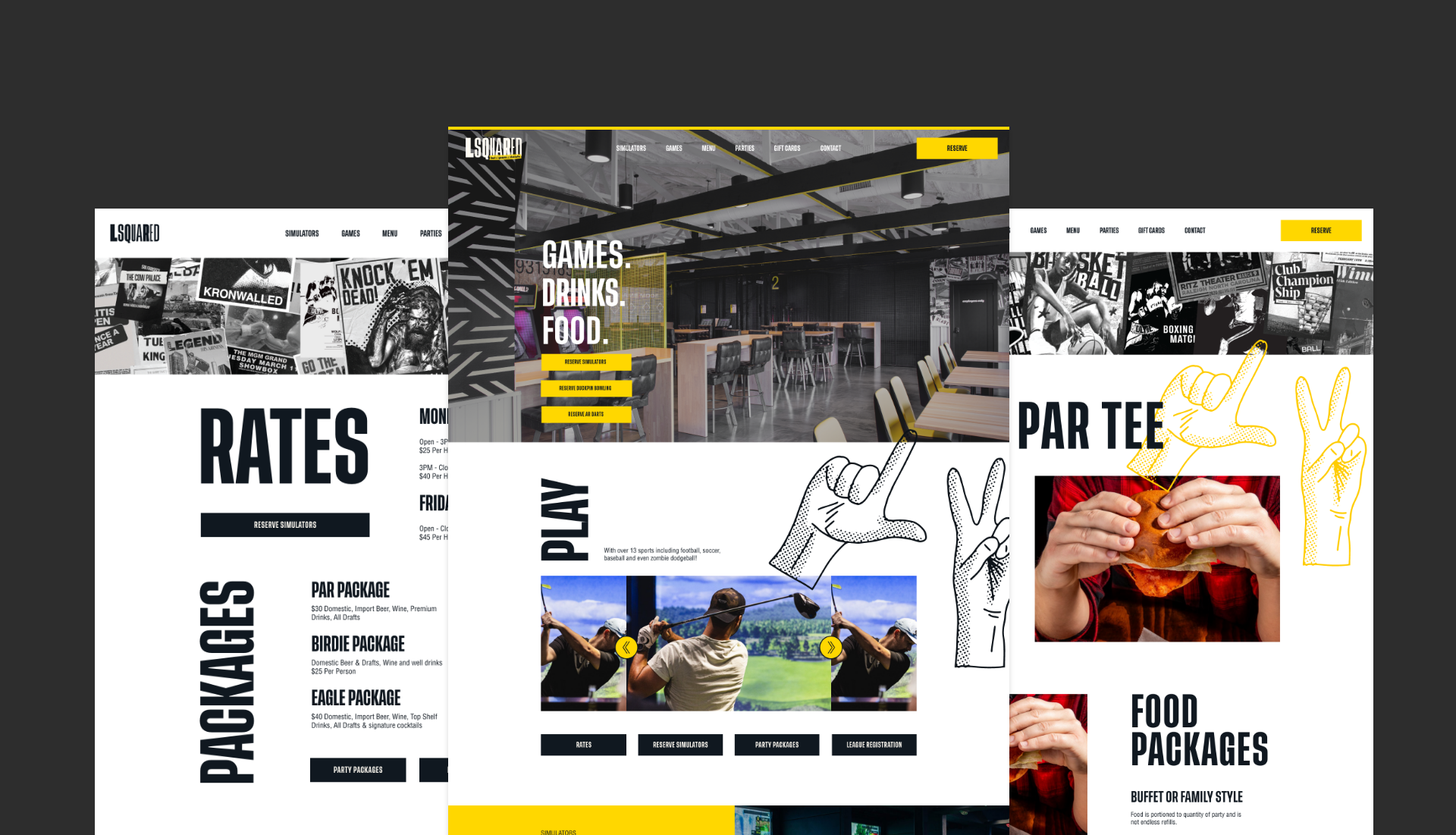 At LSQUARED, the experience doesn’t stop at the screen — it lives in every corner of the brand. You can take your swing in the HitTrax baseball simulator, tee off on world-famous golf courses, or challenge your friends to football, soccer, hockey, and even zombie dodgeball across state-of-the-art sports simulators. But what makes LSQUARED feel like more than just a venue is the brand behind it — we approached the identity the way a great athlete approaches their game: with precision and edge in equal measure.